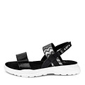 Шикарная спортивная модель сандалий для девочки украсит модный летний образ. Верх из черно-серой искусственной кожи и задник регулируются липучками. Контрастная белая подошва утолщена, выполнена из прочного рифленого полиуретана.