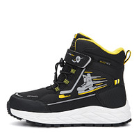 Практичные ботинки для мальчика с динамичным дизайнерским рисунком. Верх цвета хаки сочетает современную искусственную кожу и плотный непромокаемый текстиль. Шерстяная подкладка и войлочная стелька обеспечивают комфорт стоп в любую погоду. Высокая контрастная подошва из материала ТЭП отличается легкостью, морозостойкостью и хорошим сцеплением с любой поверхностью. Модель фиксируется удобной застежкой на липучку.