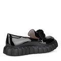Эффектные детские черные лакированные туфли. За хороший воздухообмен отвечают подкладка и  перфорированная стелька, выполненные из мягкой натуральной кожи. Высокая изогнутая подошва из полиуретана отличается легкостью и поддерживает стопы в оптимальном положении.