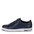 Минималистичные темно-синие кожаные кеды.  Подкладка и стелька выполнены из нежной кожи шевро, которая обеспечивает комфортный воздухообмен и идеальную посадку обуви. Гибкая резиновая подошва формирует оптимальную поддержку стоп.