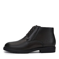 Черные теплые ботинки в классическом стиле. Верх выполнен из мелкозернистой кожи из спилка. Подкладка и стелька из натурального меха согреют ноги даже в сильный мороз. Утолщенная резиновая подошва отличается прочностью и надежным сцеплением с любой поверхностью. Фиксация модели регулируется шнуровкой и удобной застежкой на молнию.
