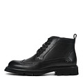 Эффектные черные кожаные ботинки с деликатным брогированием. Модель утеплена мягким ворсином. Рифленая подошва из материала ЭВА обеспечивает хорошее сцепление с поверхностью и отличную амортизацию. Модель со шнуровкой и молнией.