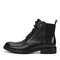 Базовые черные ботинки для повседневного комфорта. Материал верха - натуральная кожа с эластичными вставками для надежной фиксации. Подкладка и стелька утеплен ворсином. Утолщенная резиновая подошва отличается прочностью и хорошим сцеплением с поверхностью.