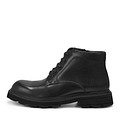 Классические высокие ботинки на широкой подошве из ЭВА материала. Цвет демисезонной обуви - чёрный. Верх модели выполнен из натуральной кожи, подкладка и стелька из мягкого ворсина. Модель украсили логотипом-оттиском на заднике.