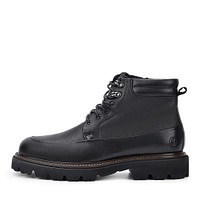 Демисезонные ботинки выполнили из натуральной кожи разных фактур. Мпара коричневого цвета с усиленной шнуровкой дополнена боковой молнией. Подкладка и стелька утеплены мягким ворсином. Высокая тракторная подошва из ЭВА обеспечивает устойчивость на любой поверхности.
