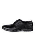 Модельные мужские полуботинки для прохладной погоды. Пара выполнена из спилка, внутренняя часть обуви – из текстиля и кожи. Модель лаконичного черного цвета с подошвой того же оттенка и шнуровкой в тон. Носок закругленный, слегка вытянутый, он визуально делает стопу аккуратнее. Обувь на невысоком устойчивом каблуке.