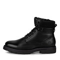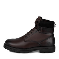 Высокие мужские ботинки выполнены из прочной крупнозернистой кожи, устойчивой к появлению царапин. Модель утеплена изнутри густой стриженой овчиной, поэтому в такой обуви будет комфортно во время долгой прогулки в холодную погоду. Чтобы пару со шнуровкой было удобно надевать и снимать, на внутренней боковой панели предусмотрена молния. Для ощущения повышенного комфорта кант из войлока наполнен смягчителем.