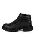 Черные кожаные мужские ботинки с акцентной шнуровкой. Пара утеплена мягким ворсином. Массивная рифленая подошва из резины обеспечивает комфортную поддержку стоп и устойчивость на любых покрытиях. Модель дополнена удобной застежкой на молнию. Утолщенный ворот добавляет комфорта в ежедневной носке пары.