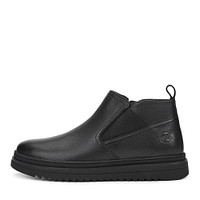 Лаконичные мужские ботинки из зимней коллекции выполнены из натуральной зернистой кожи темно-коричневого оттенка. За тепло отвечает густой натуральный мех подкладки и широкая рифлёная подошва с антискользящими свойствами. Регулируемый подъем за счет эластичной вставки. Для удобства использования петля на заднике и боковая молния.