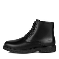 Для пошива темно-коричневых ботинок с высоким голенищем дизайнеры марки, выбрали гладкую плотную кожу. Внутреннюю отделку выполнили из пушистой стриженой овчины, которая сохраняет тепло, не перегревая ноги. Чтобы модель было легче надевать и снимать, сбоку предусмотрели молнию.