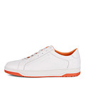 Универсальные белые кожаные кеды с акцентной отделкой подошвы. Комфорт стоп обеспечивают текстильная подкладка и стелька из нежной кожи шевро. Гибкая подошва из резины гарантирует оптимальную поддержку. Пара отлично впишется в образы с брюками, шортами и джинсами.