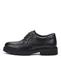 Классические черные полуботинки в стиле дерби. Материал верха - мягкая кожа из спилка. Утолщенный ворот бережно поддерживает зону щиколоток. Подкладка и стелька утеплены натуральной шерстью для комфортной терморегуляции на улице и в помещении. Высокая резиновая подошва с выраженными протекторами отличается прочностью и хорошим сцеплением с поверхностью.