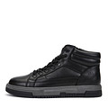 Повседневные высокие кеды в универсальном черном оттенке. Верх выполнен из гладкой кожи из спилка с водоотталкивающим покрытием. Подкладка и стелька утеплены мягкой натуральной шерстью. Высокая подошва из ТЭП отличается легкостью, морозоустойчивостью и хорошим сцеплением с любой поверхностью. Модель фиксируется шнурками и удобно застегивается на молнию.