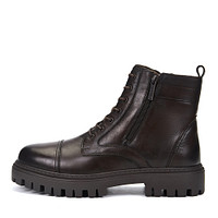 Стильные черные ботинки с высокой шнуровкой. Верх выполнен из гладкой натуральной кожи. Подкладка и стелька из шерсти обеспечивают комфортную температуру внутри обуви. Высокая подошва из ТЭП с выраженными протекторами отличается легкостью, морозоустойчивостью и хорошим сцеплением с любой поверхностью. Модель с удобной застежкой на молнию.