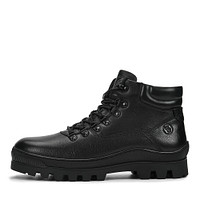 Лаконичные коричневые ботинки из зернистой натуральной кожи. Утолщенный ворот бережно поддерживает зону щиколоток. Пара утеплена мягкой шерстью для оптимальной терморегуляции на улице и в помещении. Высокая резиновая подошва с выраженными протекторами остается устойчивой даже на скользкой поверхности. Модель фиксируется плотной шнуровкой и удобно застегивается на молнию.