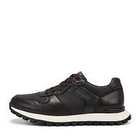 Чёрные мужские кроссовки из натуральной кожи. Подкладка выполнена из текстиля, а материал стельки - кожа шевро. Кроссовки на многослойной протекторной подошве из ЭВА материала.