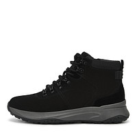 Бежевые ботинки с усиленной шнуровкой и боковой молнией выполнили из комбинированных материалов: нубук 80% и текстиль 20%. Модель декорировали патчами с логотипом на заднике и язычке. Материал подкладки и стельки зимних ботинок - натуральная шерсть. Резиновая ребристая подошва высотой 30 мм обеспечивает уверенное сцепление с поверхностью в любую погоду, предотвращая скольжение.