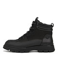 Чёрные ботинки с усиленными петлями шнуровки выполнили из комбинации материалов: нубук 60% и натуральная кожа 40%. Модель декорировали оттисками-логотипов на язычке и заднике. Зимние ботинки с петлями на язычке и заднике утеплили натуральной шерстью. Протектор гибкой широкой подошвы из резины уменьшает скольжение на любых поверхностях.