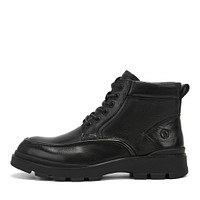 Коричневые ботинки из натуральной кожи с боковой молнией и усиленной шнуровкой декорировали рельефным швом в носочной части обуви. Логотипы бренда разместили на язычке и заднике. Подкладка из натуральной шерсти защищает от холода. Высота резиновой подошвы 30 мм.