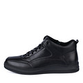 Черные демисезонные ботинки в спортивном стиле. Такую модель стоит примерить активным мужчинам, которые предпочитают неформальную одежду. Пара выполнена из кожи, подкладка и стелька – текстильные. Модель на шнуровке, сбоку – молния. Крой, имитирующий кроссовки, придает обуви динамичный вид.