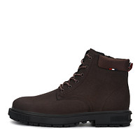 Актуальные черные ботинки являются модной отсылкой к рабочей обуви. Верх выполнен из водоотталкивающей кожа из спилка, ворот - из плотного текстиля для бережной поддержки щиколоток. Подкладка и стелька утеплены мягким ворсином. Утолщенная подошва из материала ТЭП с выраженными протекторами отличается легкостью, износостойкостью и хорошим сцеплением с поверхностью. В такой обуви ноги не устают. Модель с высокой шнуровкой и удобной застежкой на молнию.