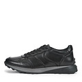 Черные кожаные мужские кроссовки. Комфорт стоп обеспечивают подкладка и стелька, выполненные из мягкой натуральной кожи. Гибкая резиновая подошва адаптируется под движения стопы. Шнуровка надежно фиксирует пару на ноге.
