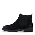 Демисезонные челси с внутренней отделкой из войлока выполнили из спилка. Мужские ботинки чёрного цвета с петлей на заднике и резиновой подошвой декорировали потертостями, придав им состаренный вид. Базовая модель, которая станет фаворитом среди почитателей комфортного кэжуал-стиля.