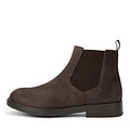Демисезонные челси с внутренней отделкой из войлока выполнили из спилка. Мужские ботинки коричневого цвета с петлей на заднике и резиновой подошвой декорировали потертостями, придав им состаренный вид. Базовая модель, которая станет фаворитом среди почитателей комфортного кэжуал-стиля.
