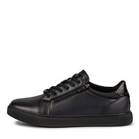 Черные кожаные кеды выполнены в минималистичном дизайне. Подкладка и стелька, выполненные из дышащего текстиля, гарантируют идеальную посадку и комфорт стоп в течение всего дня. Гибкая резиновая подошва обеспечивает поддержку стоп при движении и отличное сцепление с поверхностью. Прочная шнуровка дополнена застежкой на молнию, которая ускоряет процесс фиксации обуви. Пара хорошо впишется в повседневные образы с брюками и джинсами.