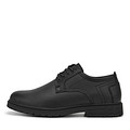 Полуботинки чёрного цвета сшили из кожи из спилка. Тёплая подкладка из натуральной шерсти — это комфорт и защита от холода в одном решении. Язычок пары декорировали оттиском логотипа. Подошва из ТЭП с антискользящим протектором.