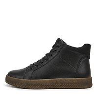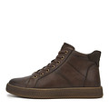 Высокие кеды с боковой молнией выполнили из кожи из спилка. Цвет пары - коричневый. Натуральная шерсть — идеальный материал подкладки для зимней обуви, защищающей от холода и влаги. Резиновая подошва высотой 35 мм сочетает амортизацию и защиту.