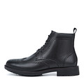 Эффектные мужские кожаные ботинки черного цвета с деликатным брогированием. Пара утеплена мягкой натуральной шерстью, обещающей комфорт стоп в любую погоду. Утолщенная подошва из материала ТЭП поддерживает стопы в оптимальном положении и добавляет комфорта при движении. Высокий мягкий ворот бережно фиксирует зону щиколоток. Модель со шнуровкой и удобной застежкой на молнию.