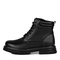 Мужские черные кожаные ботинки в стиле casual. Пара утеплена натуральной шерстью. Модель со шнуровкой и удобной застежкой на молнию. Утолщенная подошва из резины гарантирует оптимальную поддержку стоп и хорошее сцепление с покрытием.