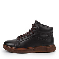 Удобные черные мужские кеды выполнены из гладкой кожи из спилка. Шерстяная подкладка и стелька гарантируют комфорт стоп в холодную погоду. Резиновая подошва обеспечивает устойчивость на любых покрытиях, не боится влаги и отличается прочностью. Модель со шнуровкой и застежкой на молнию.