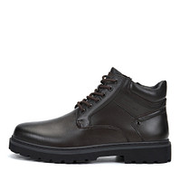 Классические черные ботинки. Верх выполнен из практичной натуральной кожи. Утолщенный ворот бережно поддерживает зону щиколоток. Подкладка и стелька утеплены мягкой натуральной шерстью. Высокая рифленая подошва из материала ТЭП поддерживает стопы в оптимальном положении и отличается устойчивостью на любых покрытиях. Модель с высокой шнуровкой и удобной застежкой на молнию.