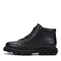 Минималистичные черные ботинки. Верх выполнен из гладкой кожи из спилка с водонепроницаемым покрытием. Подкладка и стелька утеплены мягким ворсином. Высокая подошва из материала ЭВА с выраженными протекторами отлично амортизирует нагрузку на стопы и делает обувь практически невесомой. Модель фиксируется шнуровкой и удобной застежкой на молнию.