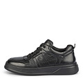 Удобные кеды в классическом черном оттенке. Верх из гладкой натуральной кожи. Утолщенный ворот бережно поддерживает зону щиколоток. Текстильная подкладка и стелька из шевро обеспечивают комфортный микроклимат внутри пары. Высокая подошва из ЭВА хорошо амортизирует нагрузку на стопы.