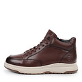 Высокие мужские коричневые кожаные ботинки в стиле ретро-кроссовок. Верх изготовлен из гладкой натуральной кожи, подкладка и стелька текстильные. Легкая и гибкая подошва из материала ТЭП обеспечивает комфорт при движении по любым покрытиям. Утолщенный ворот бережно поддерживает зону щиколоток. Модель со шнуровкой также дополнена удобной молнией, ускоряющей процесс фиксации обуви.