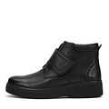 Теплые черные ботинки в стиле ретро. Верх выполнен из текстурированной натуральной кожи, которая обеспечивает оптимальную защиты от ветра и влаги. Модель оснащена молнией и застежкой велькро для плотной фиксации пары. Подкладка и стелька утеплены плотно набитым мехом. Высокая резиновая подошва отличается надежной защитой от холода и устойчивостью на любой поверхности.