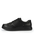 Кожаные кеды универсального черного цвета. Подкладка и стелька выполнены из мягкой натуральной кожи, благодаря чему обувь дарит ощущение комфорта даже в случае длительного ношения. Гибкая резиновая подошва обеспечивает оптимальную поддержку при движении. Утолщенный ворот добавляет комфорта в области щиколоток, а петля в пяточной части ускоряет процесс надевания обуви. Акцентные шнурки в стиле туристической обуви делают образ интереснее.