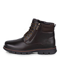 Практичные высокие кожаные ботинки с утолщенным воротом. Пара выполнена в благородном коричневом оттенке. Натуральный мех на подкладке и стельке обеспечивает комфорт стоп. Массивная подошва из материала ТЭП отлично защищает стопы от холода и осадков, а также гарантирует отличное сцепление с поверхностью. Ботинки дополнены удобной застежкой на молнию.