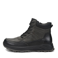 Повседневные коричневые ботинки в спортивном стиле. Материал верха - мягкая кожа из спилка. Утолщенный ворот бережно поддерживает зону щиколоток, не сковывая движений. Пара утеплена натуральной шерстью для комфортной терморегуляции внутри обуви. Высокая подошва из материала ТЭП отличается легкостью, морозостойкостью и хорошим сцеплением с любой поверхностью. Модель с плотной шнуровкой и удобной застежкой на молнию.