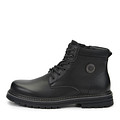 Массивные черные ботинки с верхом из кожи из спилка. Подкладка и стелька выполнены из мягкого ворсина. Рифленая подошва из материала ТЭП обеспечивает комфортное распределение нагрузки по стопе и гарантирует устойчивость на любых покрытиях. Шнуровка прочно фиксирует пару на ноге, молния ускоряет процесс надевания обуви, утолщенный ворот поддерживает щиколотки. Ботинки отлично дополнят образы с джинсами, утепленными брюками и спортивными костюмами.