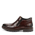 Кожаные мужские ботинки в сдержаном коричневом оттенке. Модель с подкладкой и стелькой из мягкой натуральной шерсти. Гибкая и износостойкая подошва из резины гарантирует хорошее сцепление с поверхностью. Модель с практичной застежкой на молнию и утолщенным воротом.