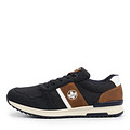 Идеальная пара на межсезонье для активных мужчин – прочные и стильные кроссовки. Это модель в приятном темно-синем цвете с коричневыми и белыми вставками. Искусственная кожа и текстиль в качестве верха защищают ноги от прохлады и не позволяют им потеть. Резиновая подошва хорошо амортизирует и равномерно распределяет нагрузку.