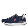 Синие мужские кроссовки выполнены из текстиля и спилка. Дышащие подкладка и стелька формируют комфорт стоп в течение всего дня. Подошва из материала ЭВА поддерживает стопы в оптимальном положении и отлично амортизирует нагрузку. Шнуровка надежно фиксирует пару на ноге. Практичная петля на вороте ускоряет процесс фиксации обуви.