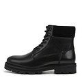 Демисезонные ботинки чёрного цвета выполнили из натуральной кожи. Задник модели изготовлен из бархатистого спилка. Мужские ботинки с внутренней отделкой из ворсина и усиленной шнуровкой застегиваются молнией сбоку.
