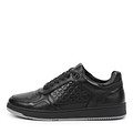 Черные кожаные кеды дополнены фактурными вставками. Гибкая и прочная подошва из резины. Подкладка изготовлена из натуральной кожи, стелька выполнена из нежной кожи шевро. Модель с прочной шнуровкой и утолщенным воротом, бережно поддерживающим щиколотки. Пара идеально подходит для посещения офиса, прогулок и активного отдыха.