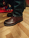 Коричневые ботинки из мелкозернистой натуральной кожи. Модель с мягкой подкладкой и стелькой, выполненными из ворсина, что обеспечивает комфорт и отличную терморегуляцию при любой погоде. Прочная шнуровка надежно фиксирует обувь на ноге. Благодаря своему лаконичному дизайну, пара отлично сочетается с джинсами, брюками-чинос, костюмами.