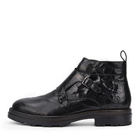 Демисезонные ботинки коричневого цвета. Материал верха - шевро, внутренняя отделка из ворсина. Кожа с мягкими складками и лёгкими потёртостми. Модель с металлическими ремешками с пряжками на голенище застегивается молнией. Язычок и задник декорирован оттиском-логотипом. Подошва 30 мм выполнена из резины.
